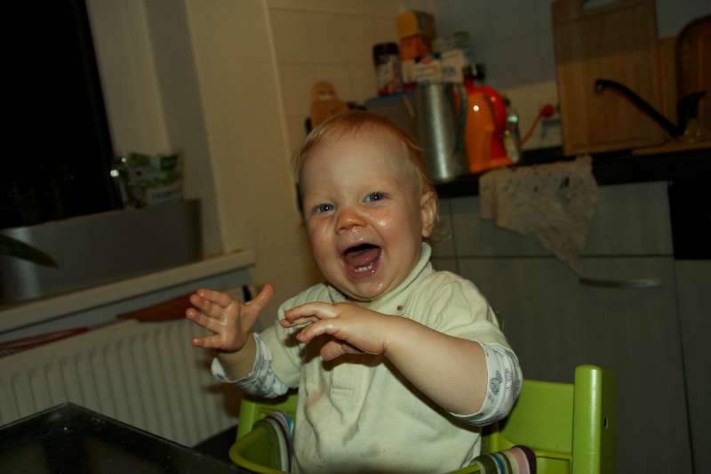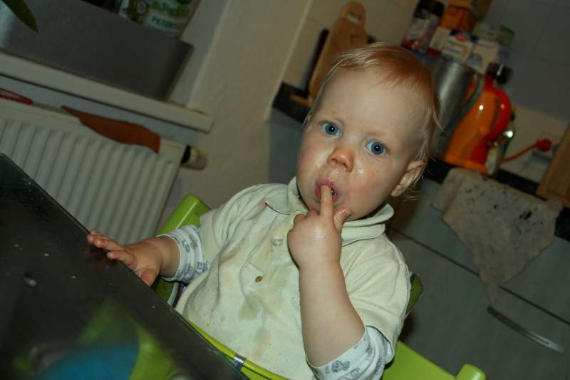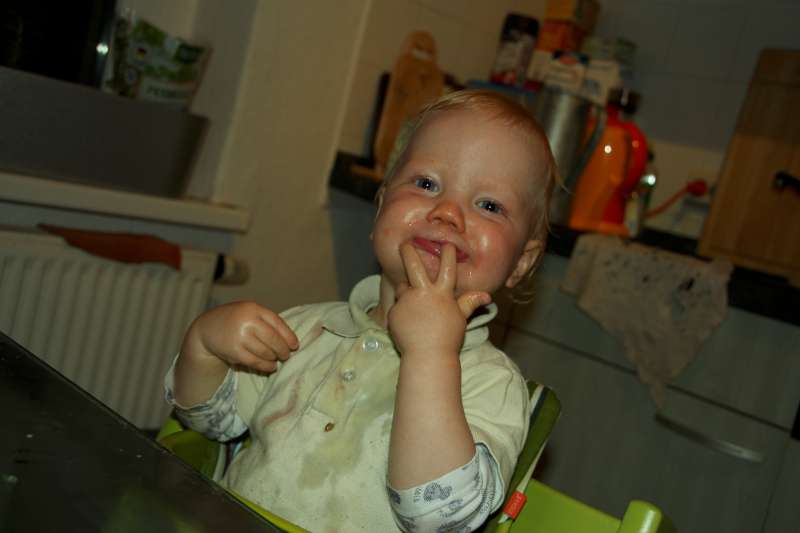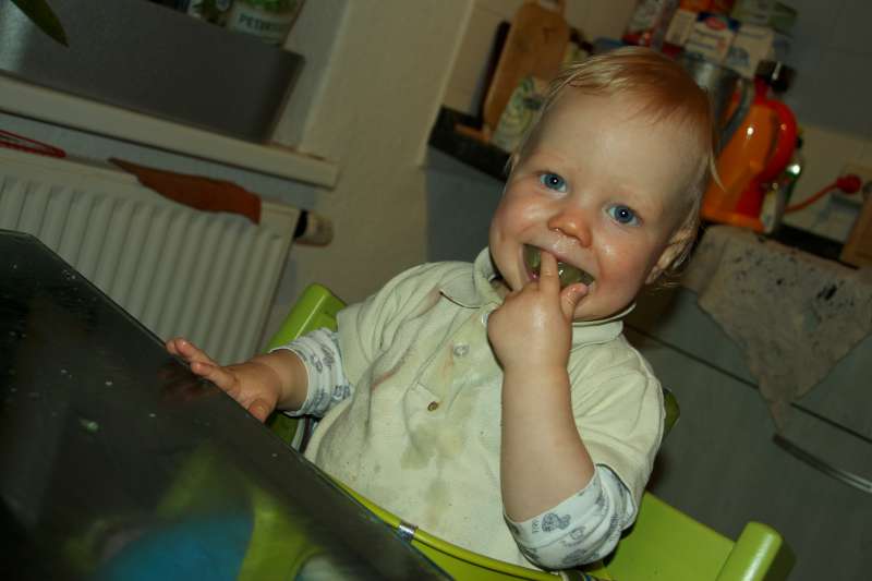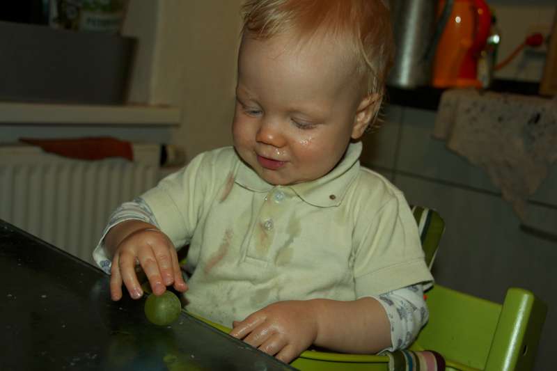 nach dem Abendbrot – für uns gab es noch eine Nachspeise. Die grünen Kullerdinge sind echt lecker. Allerdings fällt mir das Kauen mit den Schneidezähnen noch etwas schwer. Ich bräuchte einfach noch mehr von den Kaudingern. Weintrauben, so nennt Mama das grüne Zeug, machen mir jedenfalls jede Menge Spaß.