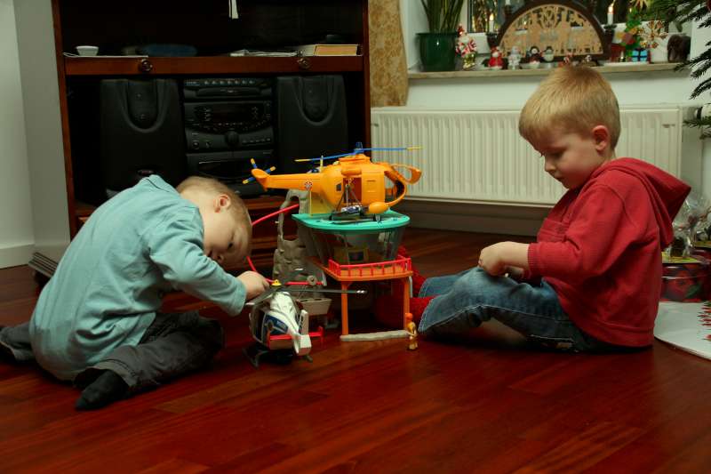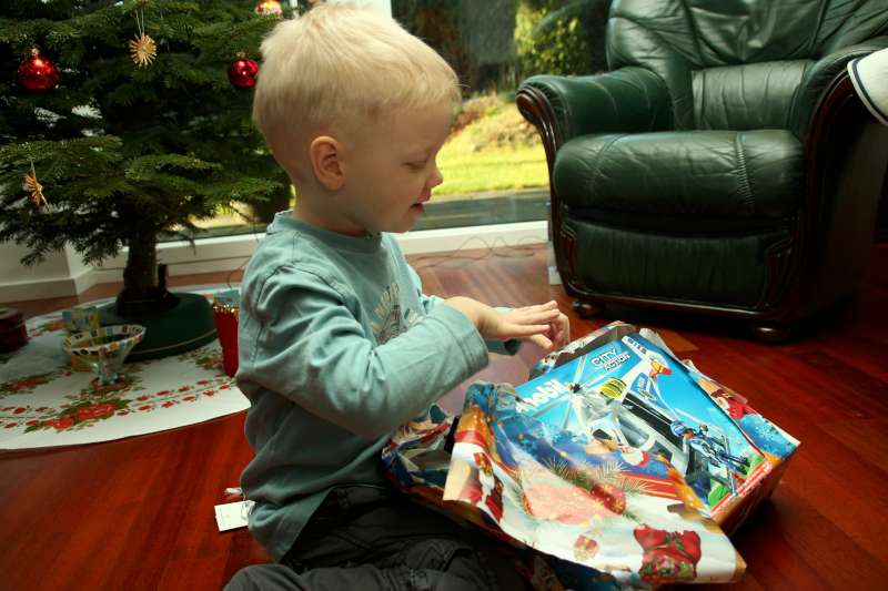 Es gab leckeren Hirsch mit Klößen zum Mittag. Gleich darauf erfolgte die Bescherung, bei dem keiner zu kurz kam. Finn packte freudestrahlend einen Hubschrauber aus und Jannik baute sogleich seinen Lego-Mac (Truck aus Cars) zusammen, fleißig von Ronny unterstützt.