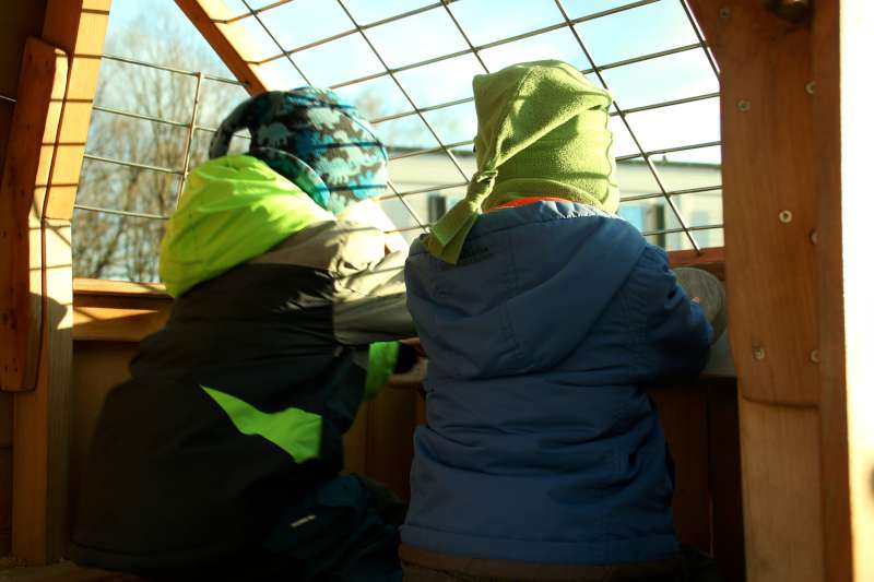 Das Wetter war angenehm, fast schon frühlingshaft. Somit ging es raus an die frische Luft. am ersten Spielplatz konnten alle Kinder ihre Energien verbrennen. Es wurde geklettert, balanciert und gesprungen.